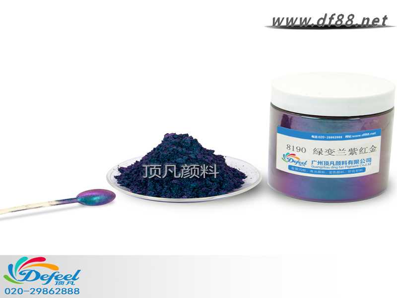 其實(shí)變色龍粉就是珠光粉的一種,頂凡變色龍顏料是一種多層片狀顔料由鋁、氟化鎂和鉻三種顔料組成,把它添加入油漆、涂料、塑料、紡織品和包裝品中之后,你從不同的角度看,它們就能變幻出不同的顔色。
