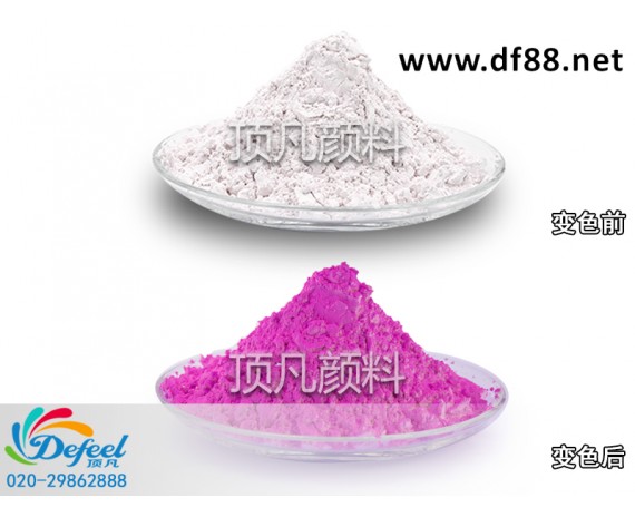 2、變色情形:感光變色粉所制成的產品在無紫外光源的環(huán)境下為無色(或該產品本色),在 有紫外光源的環(huán)境下為變色(或該產品本色與光變色的混合色)。